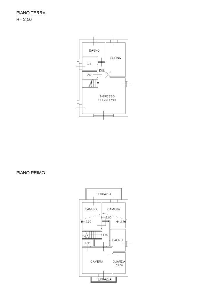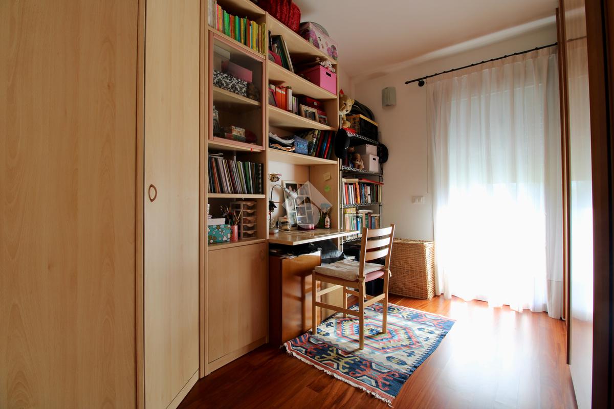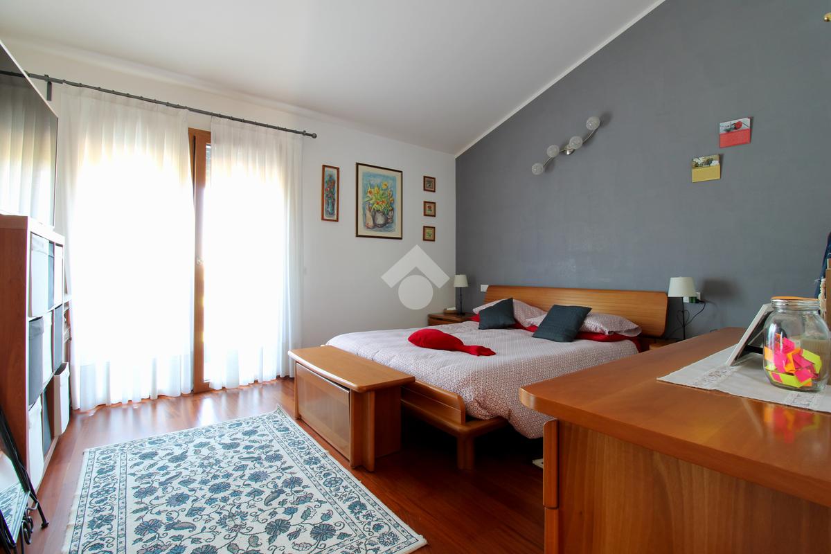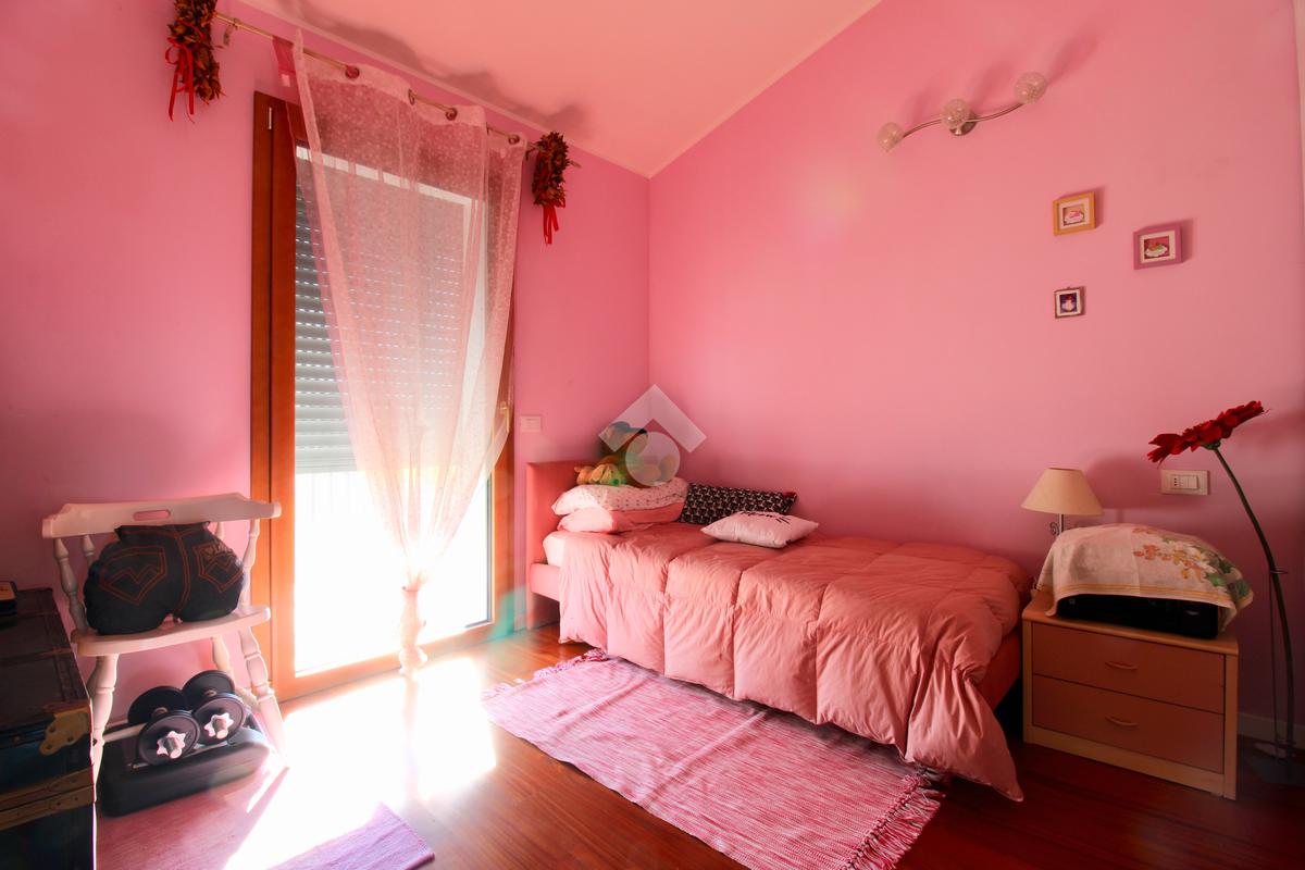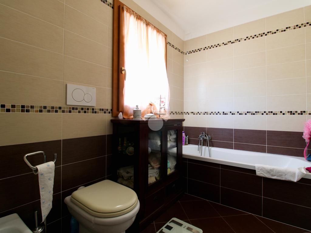 Al piano superiore, la zona notte comprende tre camere da letto di cui due con accesso al terrazzo comune e una con accesso al terrazzo privato; la camera principale dispone di un'ampia cabina armadio privata. Completa il piano un bagno dotato di vasca anch'esso finestrato garantendo comfort e luminosità.