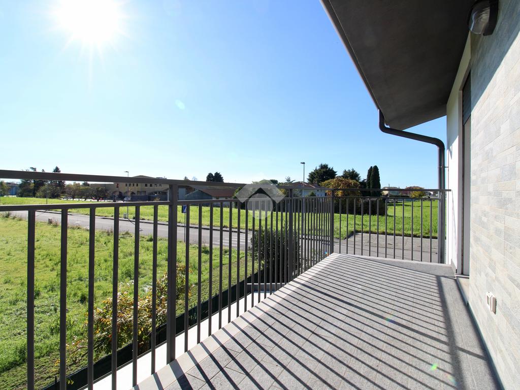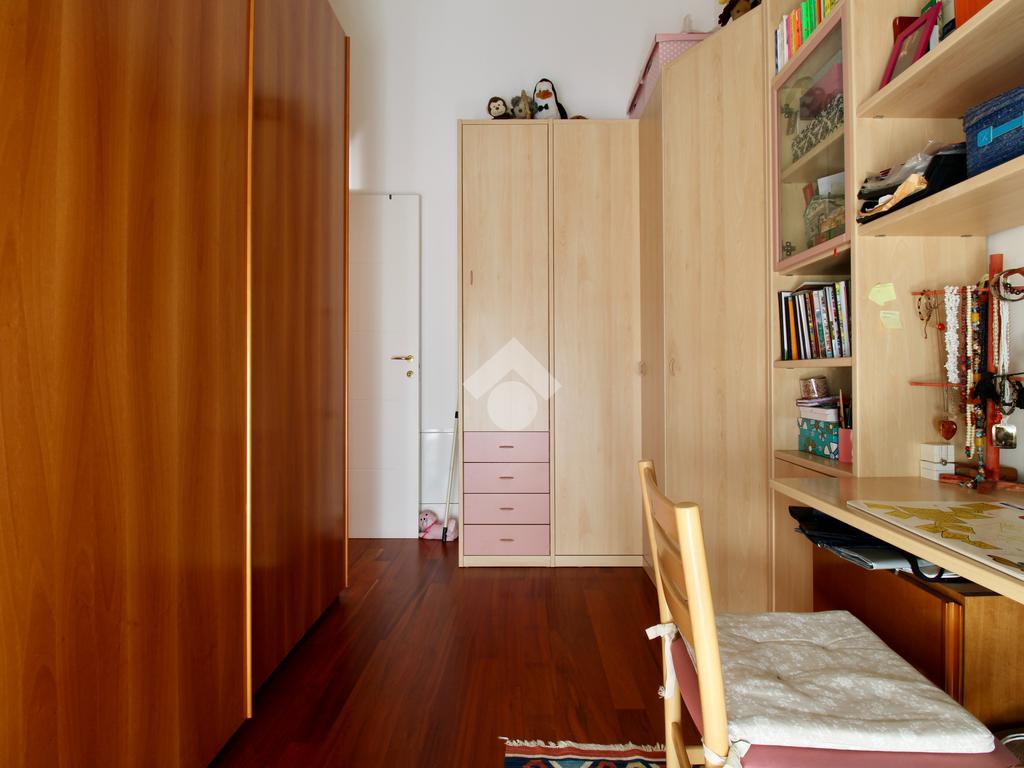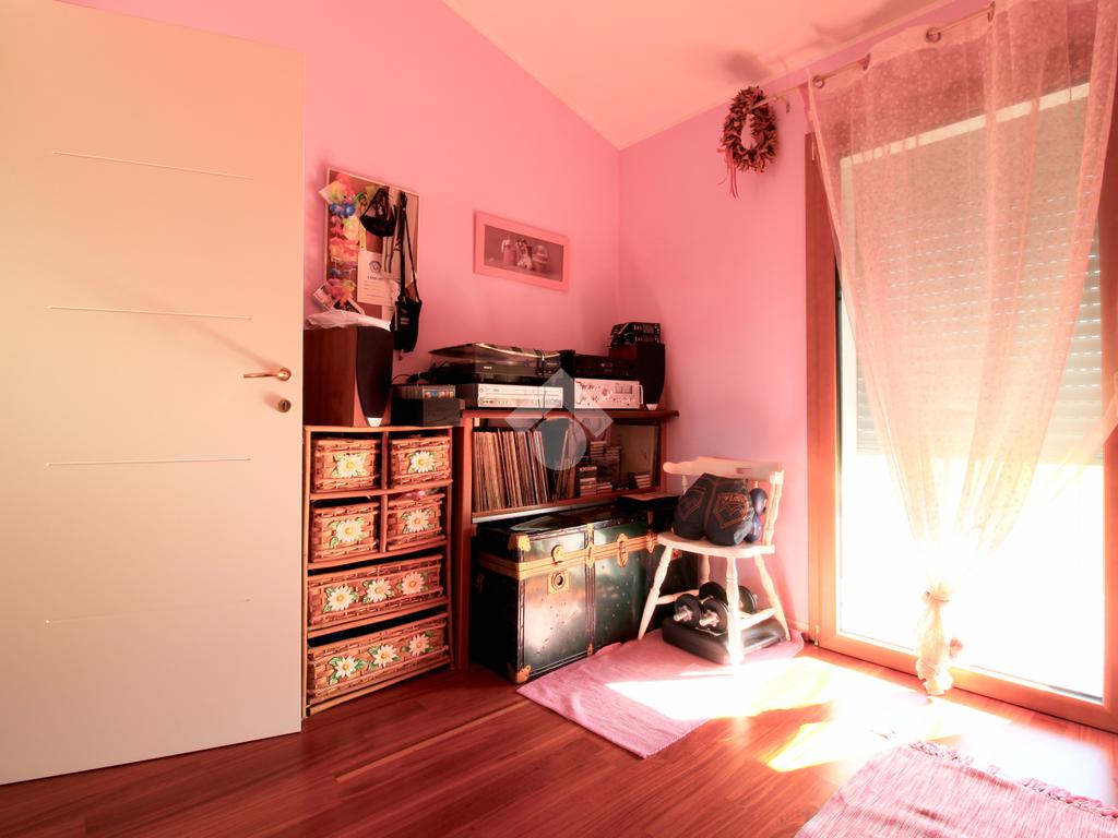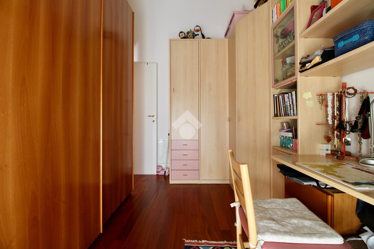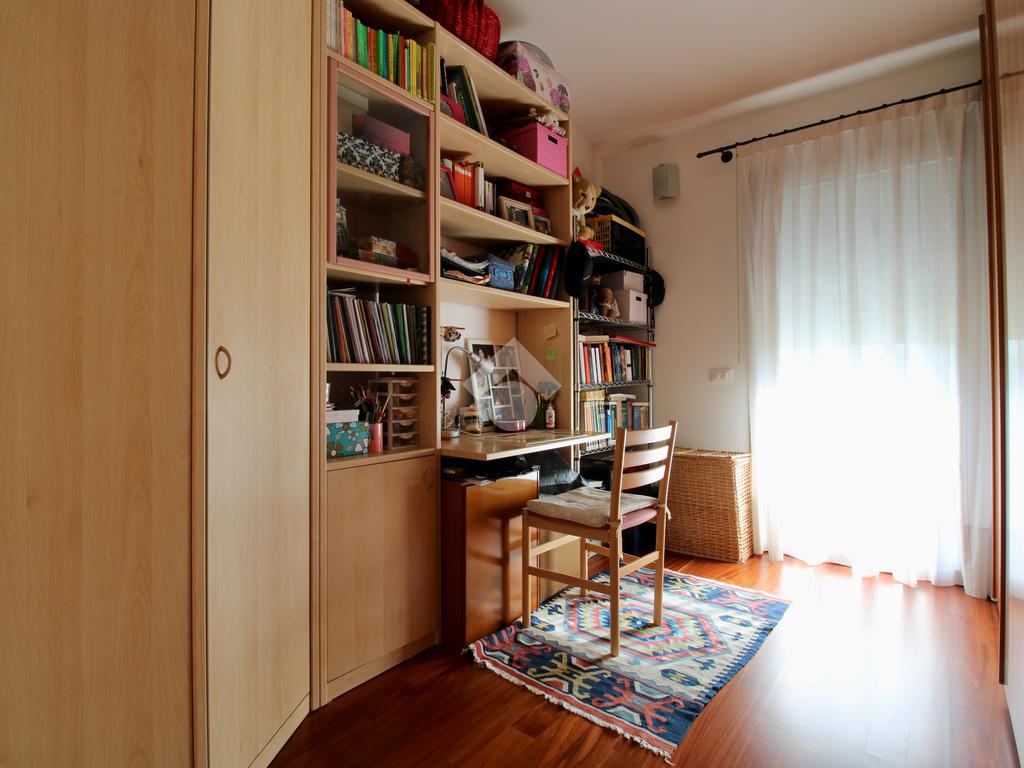 Al piano superiore, la zona notte comprende tre camere da letto di cui due con accesso al terrazzo comune e una con accesso al terrazzo privato; la camera principale dispone di un'ampia cabina armadio privata. Completa il piano un bagno dotato di vasca anch'esso finestrato garantendo comfort e luminosità.