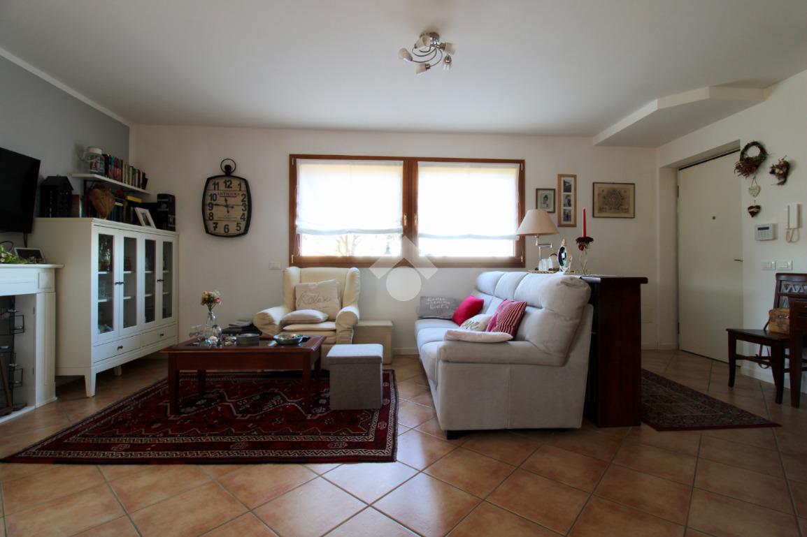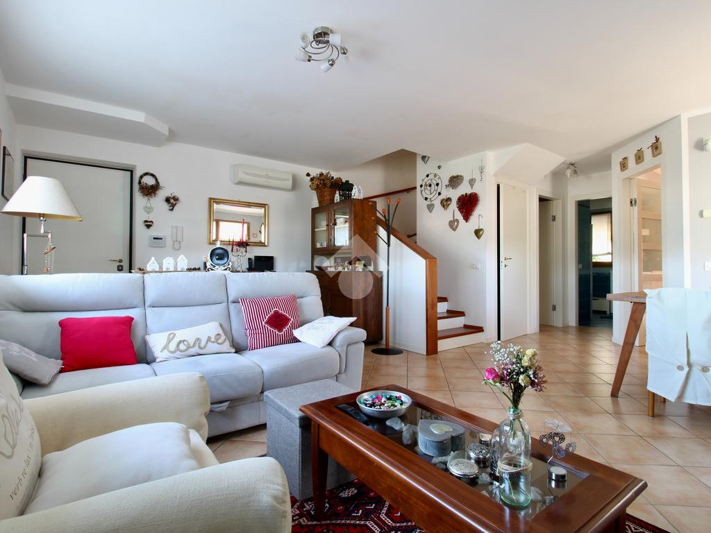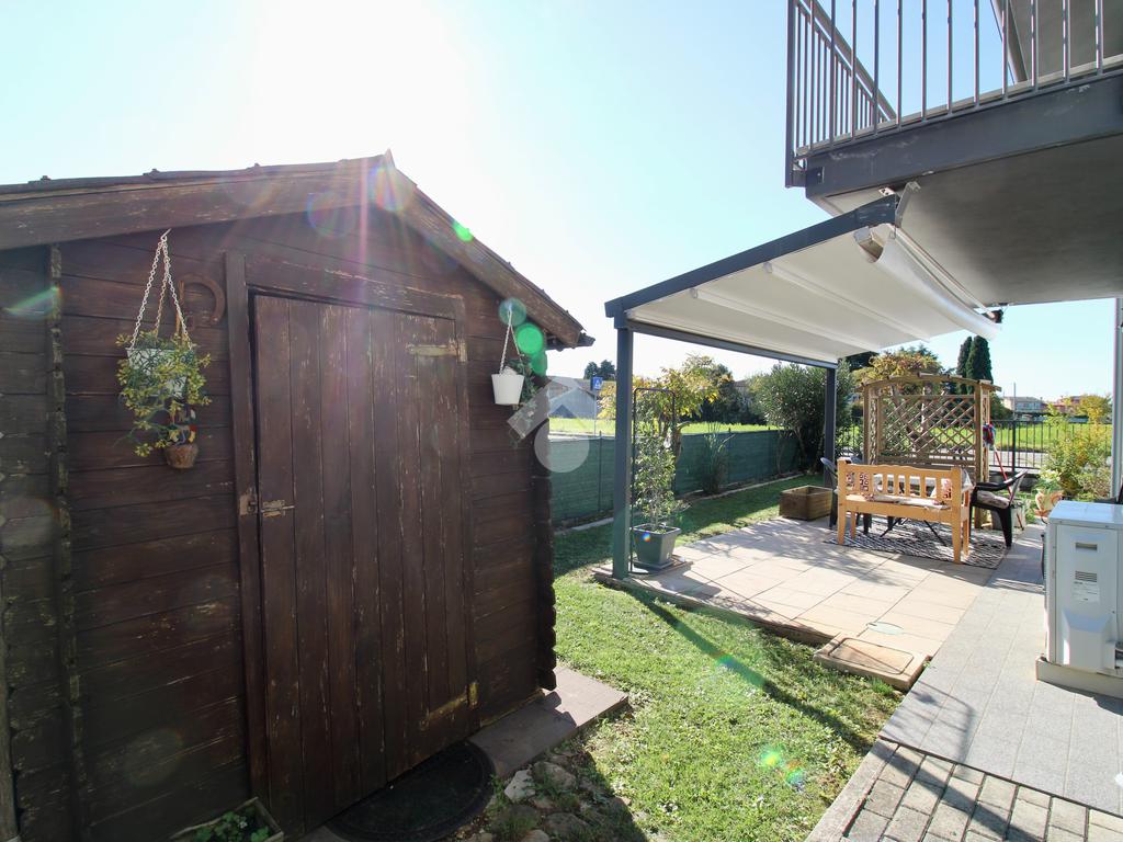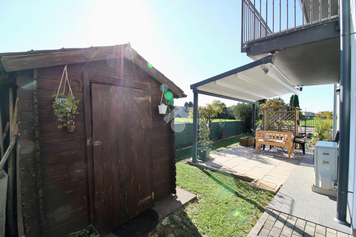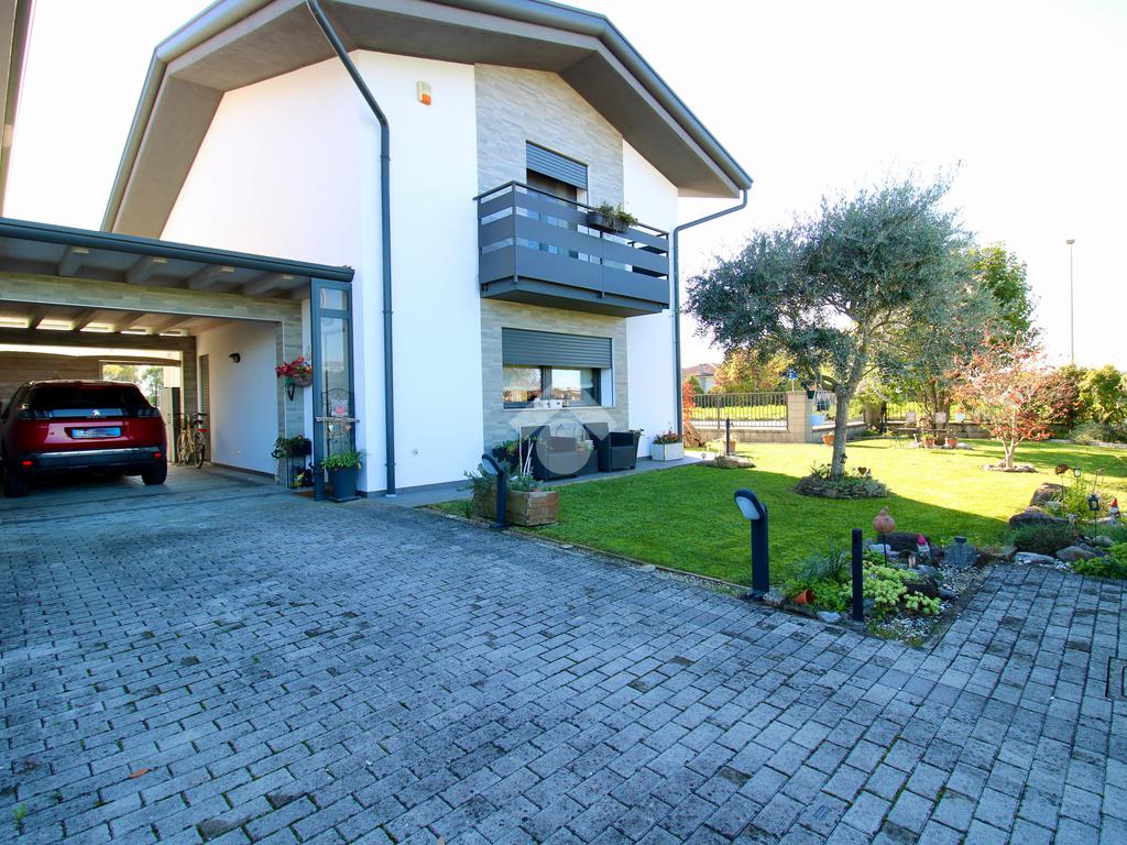 Nella tranquilla località di San Marco, nel comune di Palmanova, casa semindipendente di recente costruzione distribuita su due livelli.