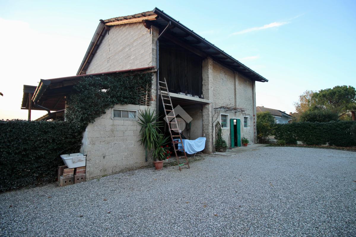 L’immobile risale orientativamente ai primi decenni del 1900 e sorge sulla strada che da Udine porta a Palmanova, in una frazione di Santa Maria La Longa.